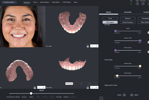 3D smile design for mock-ups, shells, composite veneers, crowns, bridges, all-on-x, guides