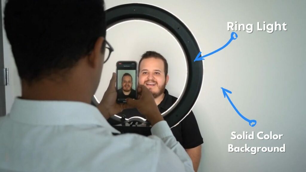 A dimmable ring light and a solid colored background (or wall) can also provide a similar effect in smaller spaces which you can place next to your dental chair for example.