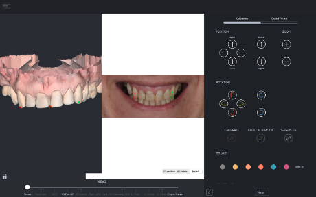 To create the digital wax-up in SmileFy 3D Smile Design, the intraoral scan and patient frontal picture must be calibrated as shown in the screens below. [Figures 2,3]