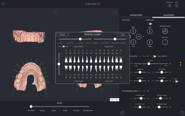 The 3D teeth were then selected for the 3D wax-up and automatically placed into the 3D smile frame following the proportions predefined in the previous screen [Figure 5]